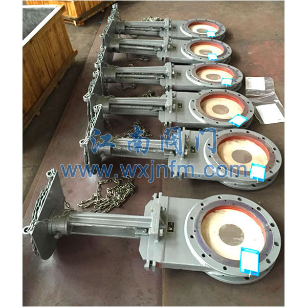 1、本阀全圆形的直流通道设计不存渣、不卡阻。阀板底端加工成刀刃状,对松软物料如纤维、纸浆、木浆具有切断功能,同时有良好开启和关闭作用。阀板经过精磨抛光处理可获得较好的密封效果。设计紧凑、占据空间小、重量轻、价格便宜、易于安装、耐磨防堵措施完善、便于维修、使用方便及寿命长,并且可任意选用驱动装置。